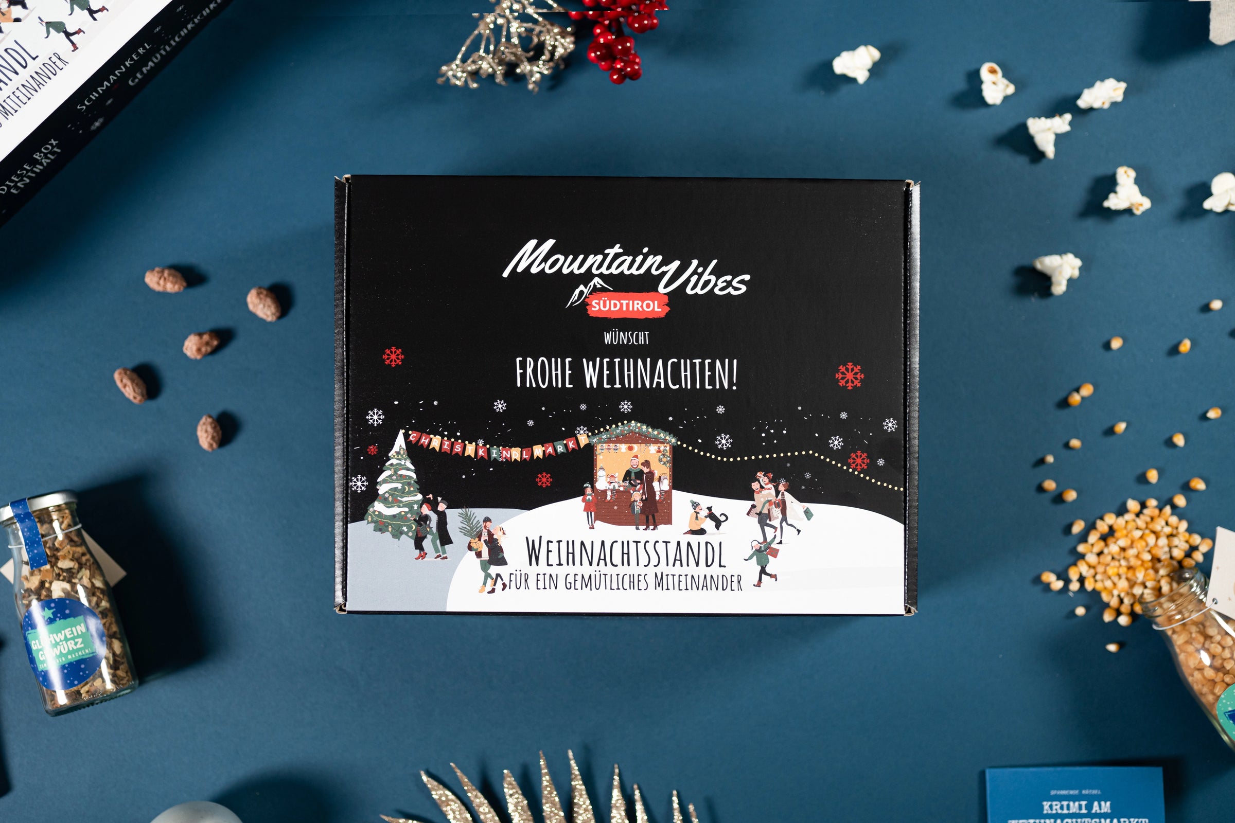 Unsere Weihnachtsbox kommt standardmäßig mit klassischen Weihnachtsschmankerl vom Christkindlmarkt. Zusätzlich legen wir gerne ihre Artikel wie ein T-Shirt oder ähnliches hinzu.